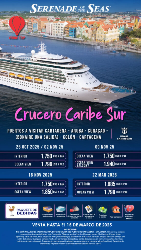 RESERVAS Y PAGOS A TRAVÉS DE WHATSAPP (+57) 3157317886 O AL CORREO ELECTRÓNICO info@vernetrip.com